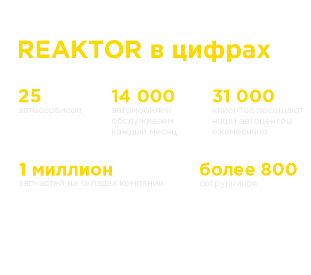 За вами будет закреплен персональный менеджер, который найдет ответы на все возникающие вопросы, поможет выявить слабые места, предложит мероприятия по улучшению показателей на основе многолетнего личного опыта и опыта участников сети REAKTOR.